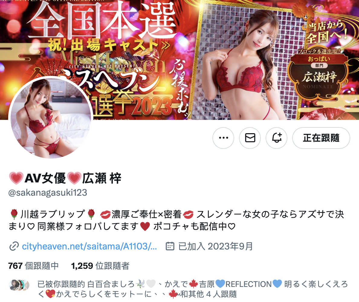 要找她很容易,因为她虽然没拍有码片了却有X(https://twitter.com/sakanagasuki123),然后你会发现她虽然保留了AV女优的头衔但却已经转职为风俗妹,然后2020年出道是28岁的她,在2024年风俗界的预约网页上却是24岁: