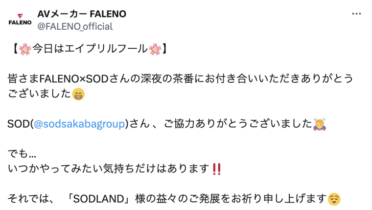 因为美乃すずめ(美乃雀)在下午马上发了她生完小孩的照片,所以这当然是愚人节的玩笑;是说今天大家发文都不可信,早上我讲的Faleno Land(就是Faleno要开一间像SOD Land的风俗店)然后要请星乃莉子去管吃的也是愚人节玩笑,枉我自许聪明一世结果是中招✕2⋯