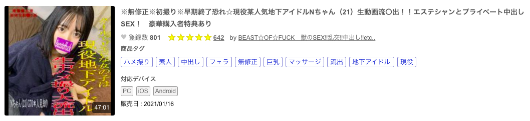 今年1月,在SOD被设定是茧居族的她是以地下偶像N的身分在FC2下马:因為她真的条件不错,脸小小的个子高高的还是个刚毛,所以应该蛮多人看过她的鲍鲍了⋯